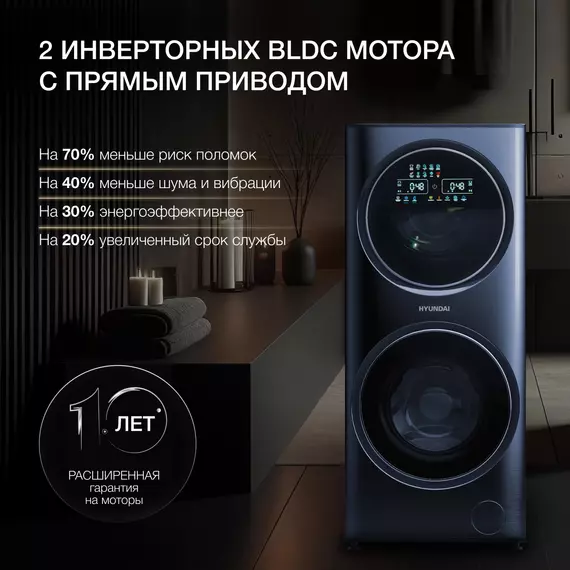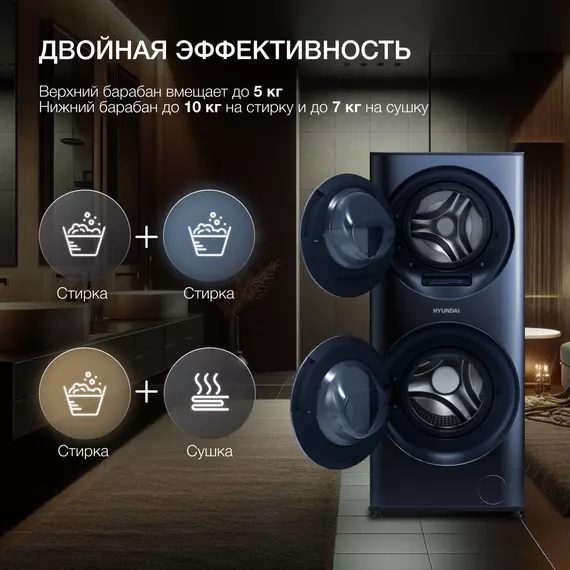 Стиральная машина Hyundai WMD9425 класс: A+++ загр.фронтальная макс.:15кг (с сушкой) темно-синий