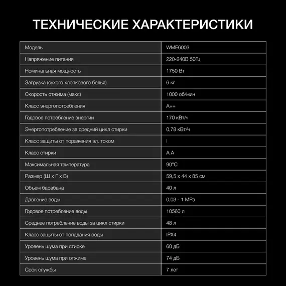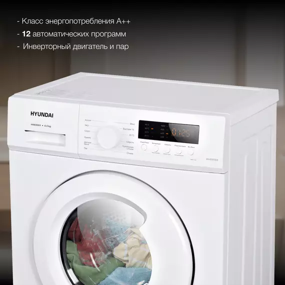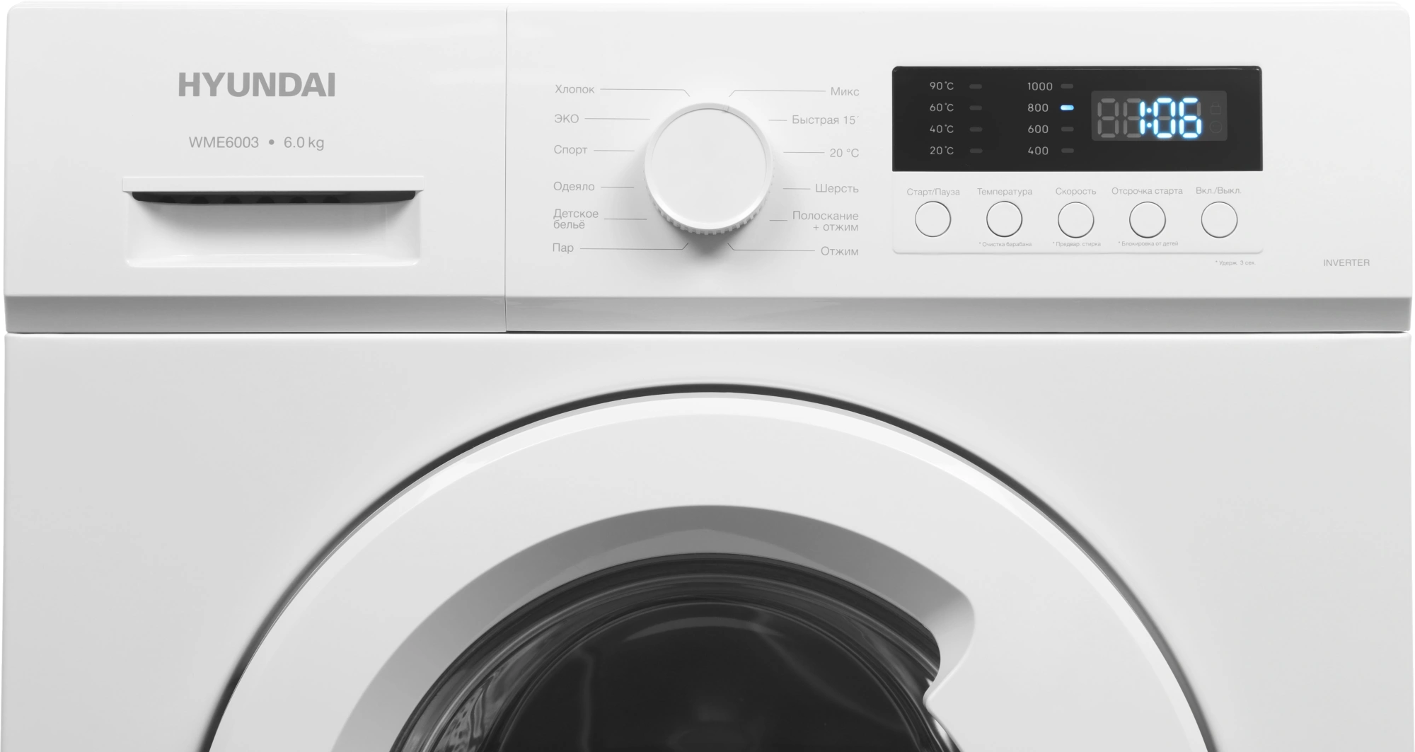 Стиральная машина Hyundai WME6003 класс: A++, загр.фронтальная, макс.:6кг, белый, инвертор
