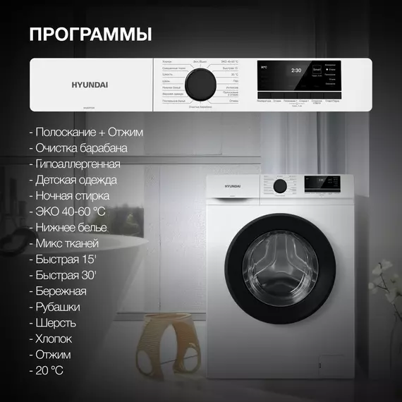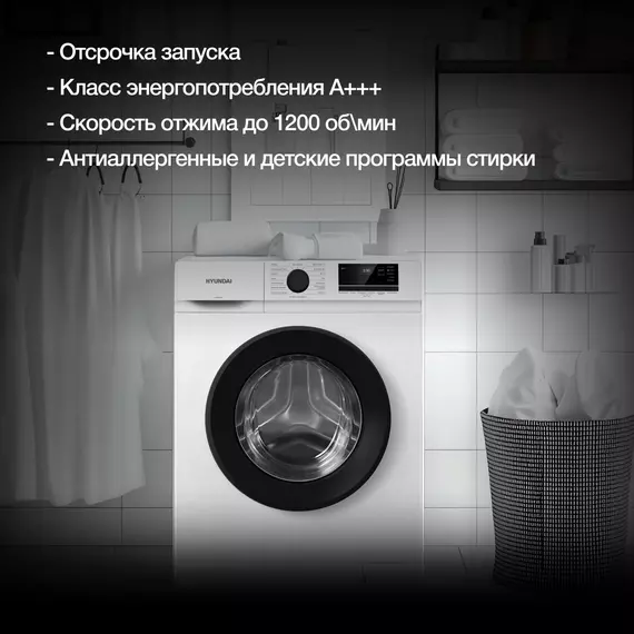 Стиральная машина Hyundai WME7208 класс: A+++ загр.фронтальная макс.:7кг белый инвертер