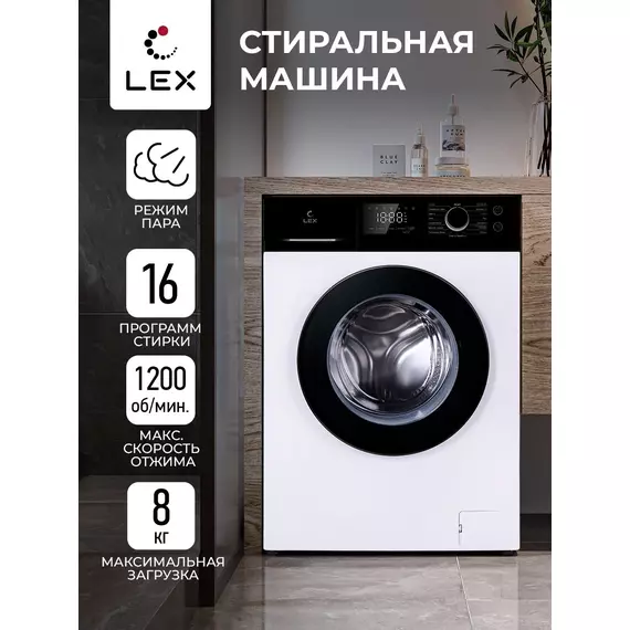 Стиральная машина LEX LWM08012WBLID класс: A+++ загр.фронтальная макс.:8кг белый инвертер [CHKO100022]