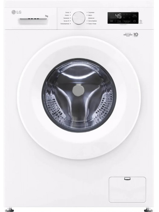 Стиральная машина LG F2Y1NS3W 6 кг, цвет белый, тип загрузки фронтальная, инверторный двигатель, подача пара, дисплей, класс потребления электроэнергии A, скорость вращения 1200 об/мин, защита от протечек воды частичная, защита от детей