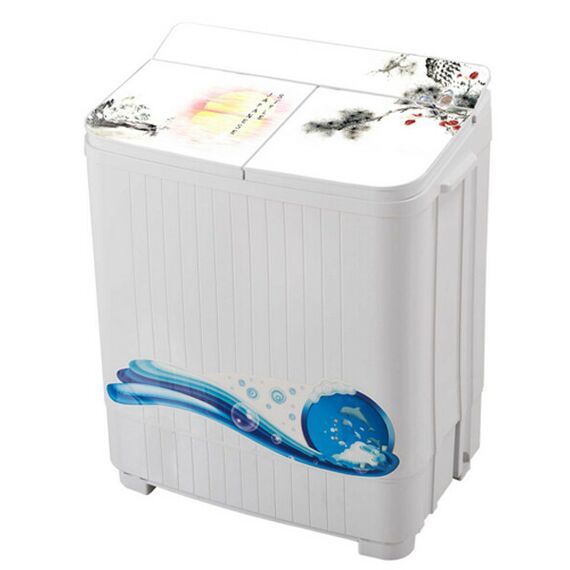 Стиральная машина OPTIMA МСП-95СТ красный орнамент, полуавтомат, встроенный сливной насос, материал бака и центрифуги пластик, стеклянная крышка с принтом, загрузка 9.5кг/6кг, мощность стирки 600 Вт, отжим 1350 об/мин, фильтр от ворса