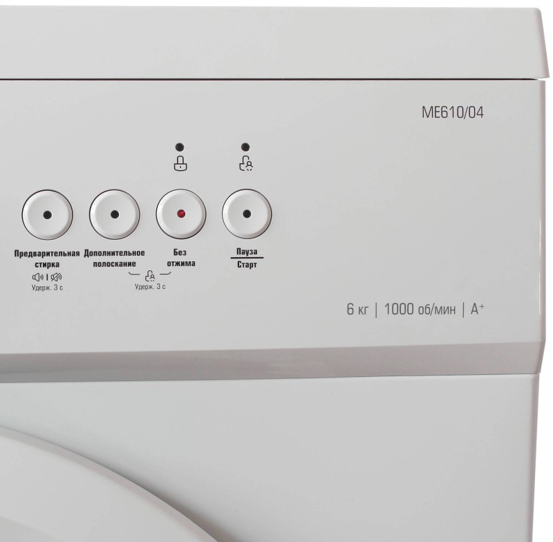 Стиральная машина Бирюса WM-ME610/04 6 кг, 1000 об/мин, узкая 40см, LED индикация, 23 программы