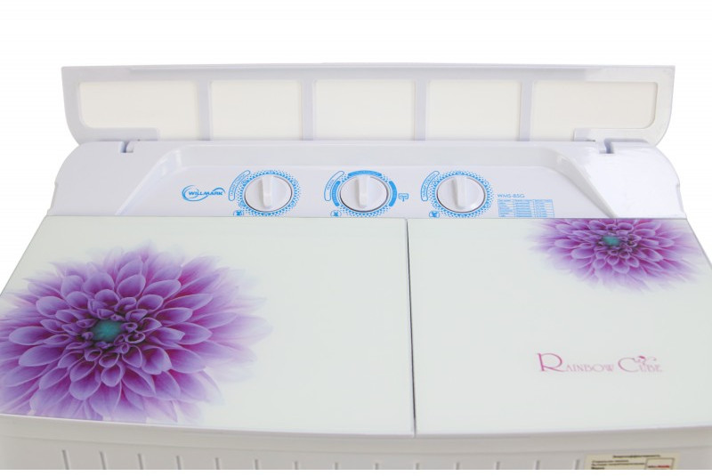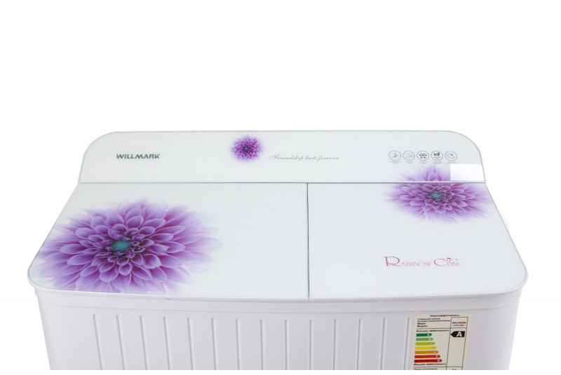 Стиральная машина WILLMARK WMS-85G полуавтомат, цвета: белое стекло - фиолетовые цветы