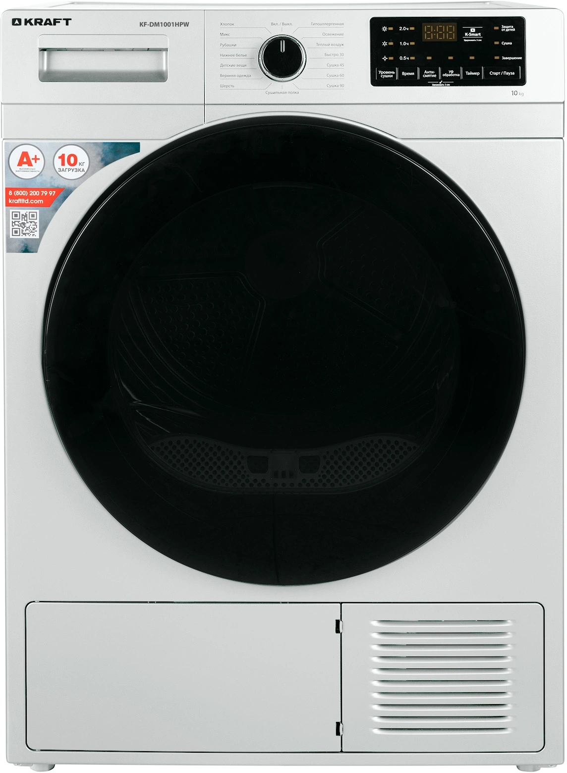 Сушильная машина Kraft KF-DM1001HPW кл.энер.:A+ макс.загр.:10кг белый
