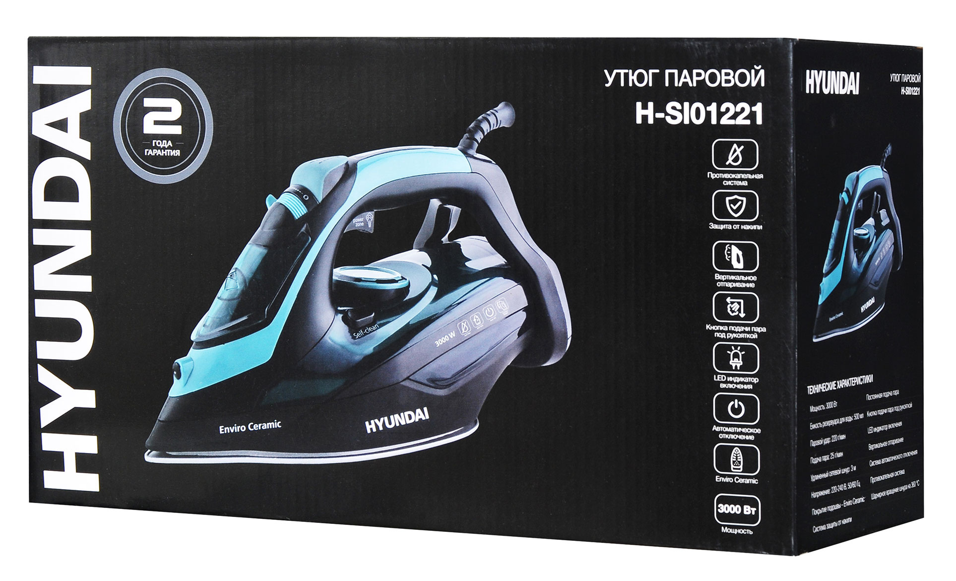 Утюг Hyundai H-SI01221 3000Вт черный/зеленый