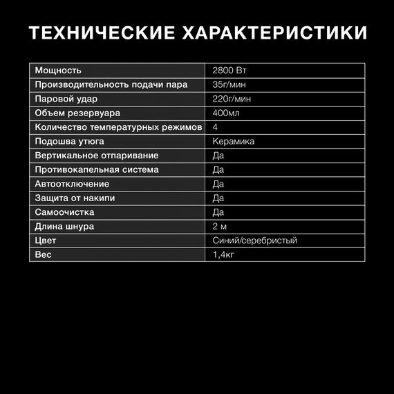 | Емкость для воды | 400 мл |