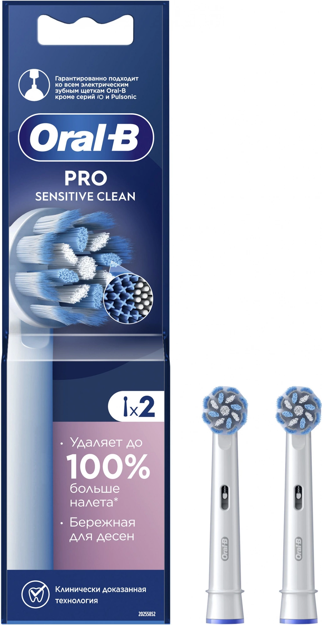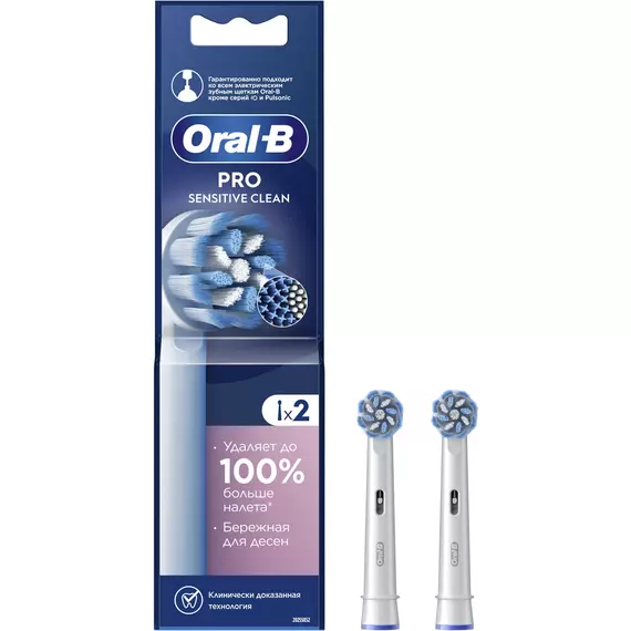 Сменные насадки Oral-B PRO Sensitive Clean для электрических зубных щёток Oral-B созданы совместно со стоматологами для эффективной ежедневной гигиены полости рта. Адаптивные Х-образные щетинки проникают во все участки полости рта, удаляя до 100% больше зубного налета и обеспечивая глубокое очищение