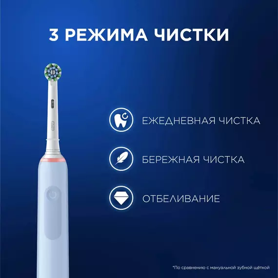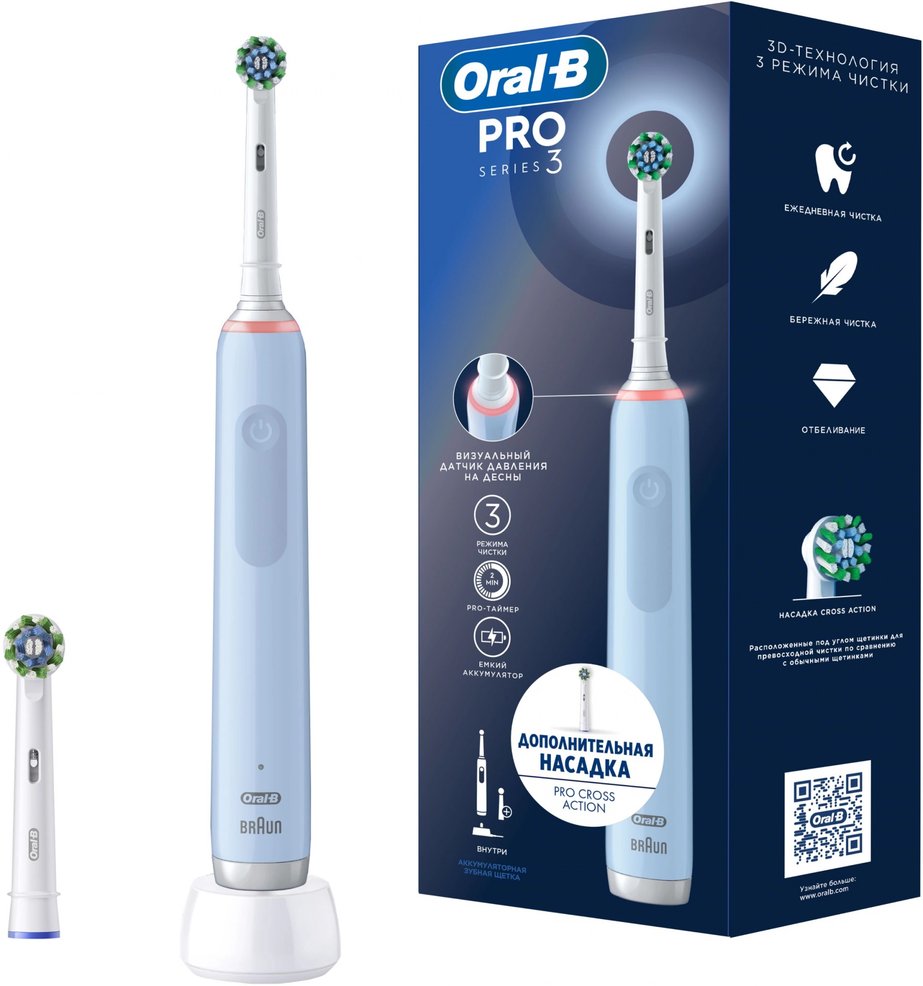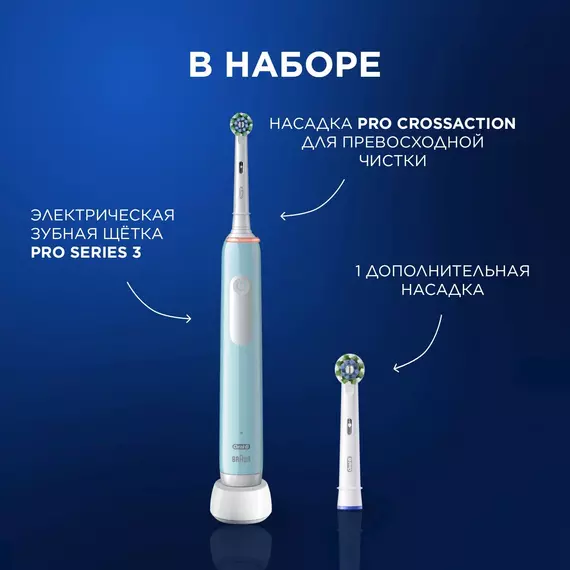 Электрическая зубная щетка нового поколения Oral-B Pro Series 3 обеспечит ощущение профессиональной чистки каждый день. Круглая насадка с технологией щетинок PRO Cross Action, удаляет до 100% больше зубного налета* даже в труднодоступных местах и защищает десны.