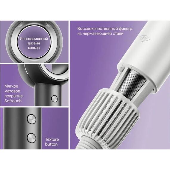 Высокоскоростной фен со скоростью потока 70 м/с, обеспечивает мгновенную сушку волос всего за 2 минуты, 4 температурных режима и 3 режима скорости помогут подстроиться под любой стиль укладки. Стильный и компактный. Бережно сохраняет волосы с 500 млн. негативных ионов и системой терморегулирования