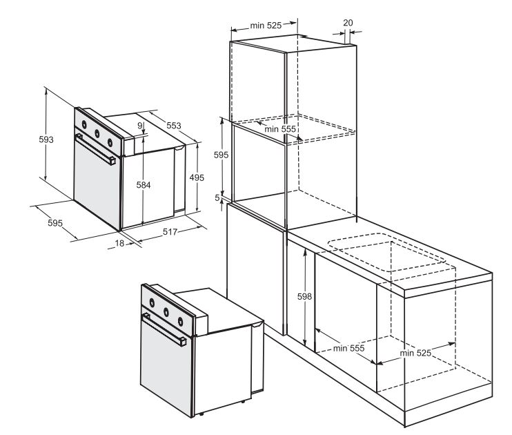 Духовой шкаф объемом 50 литров, оснащенный подсветкой камеры. Так же в данной модели предусмотрена функцией гриля.