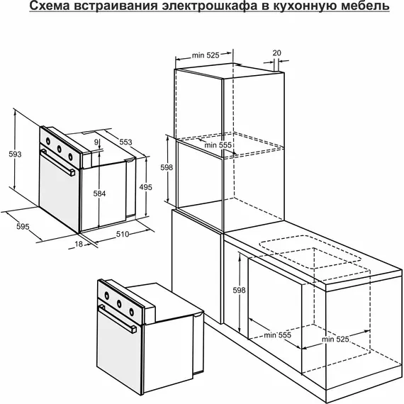 | Особенности | Встраиваемый электрический шкаф с металлическим фасадом белого цвета, 9 режимов работы, тангенциальное охлаждение, механический таймер, подсветка, конвектор, гриль, терморегулятор. |