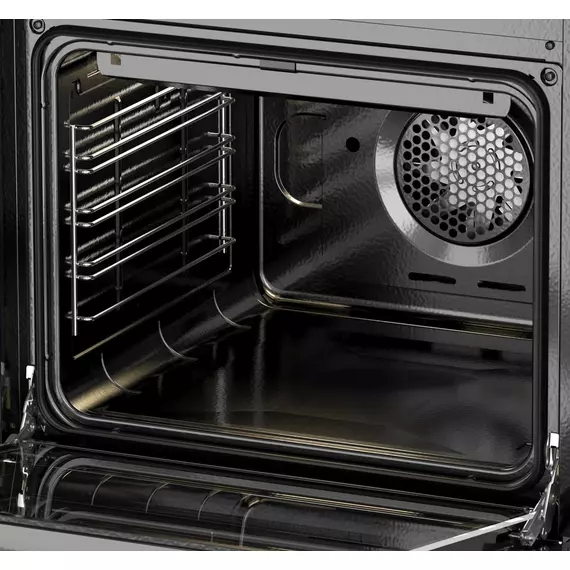 | Особенности | Встраиваемый электрический шкаф с фасадом из нержавеющей стали, 9 режимов работы, тангенциальное охлаждение, механический таймер, подсветка, конвектор, гриль, терморегулятор. |