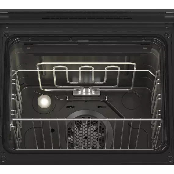 | Особенности | Встраиваемый электрический шкаф с фасадом из нержавеющей стали, 9 режимов работы, тангенциальное охлаждение, электронный таймер, подсветка, конвектор, гриль, терморегулятор. |