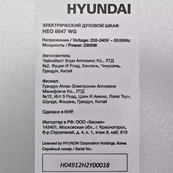 Духовой шкаф Hyundai HEO 6647 WG белый