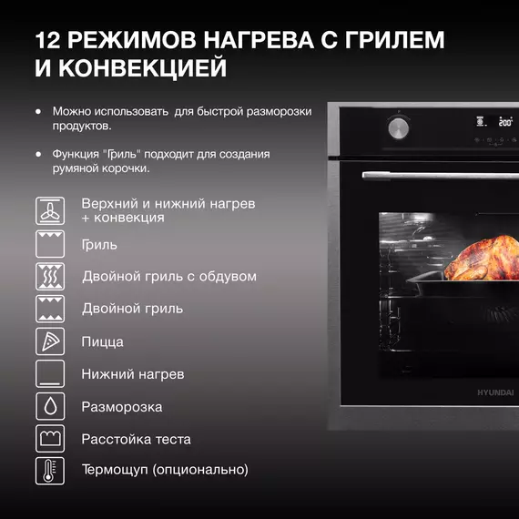 Духовой шкаф электрический Hyundai HEO 6772 IX черный