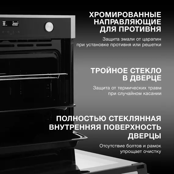 | Полностью стеклянная внутренняя поверхность дверцы духовки | Да |