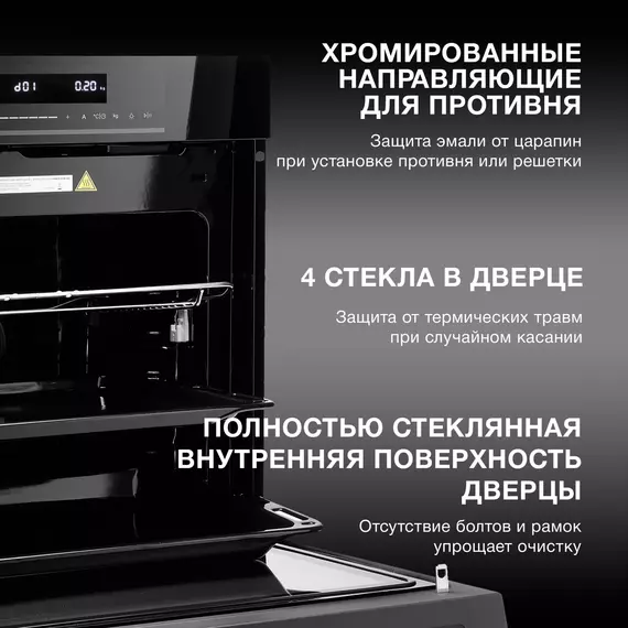 | Полностью стеклянная внутренняя поверхность дверцы духовки | Да |