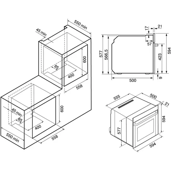 | Размеры для встраивания | 55.8x55x60см |