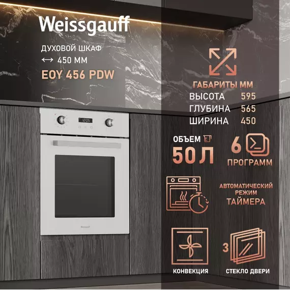 Духовой шкаф электрический Weissgauff EOY 456 PDW белый [436253]