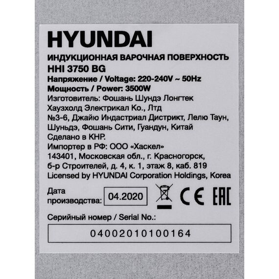 Индукционная варочная поверхность Hyundai HHI 3750 BG черный