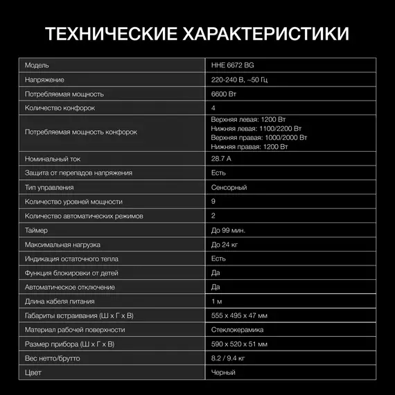 | Тип | Индукционная варочная поверхность |