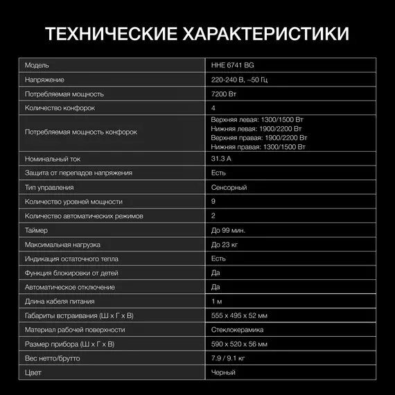 Индукционная варочная поверхность Hyundai HHI 6741 BG черный
