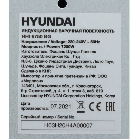 Индукционная варочная поверхность Hyundai HHI 6750 BG черный