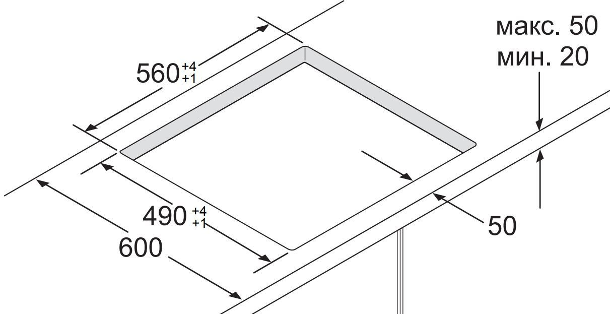 | Глубина ниши для встраивания | 490 мм |
