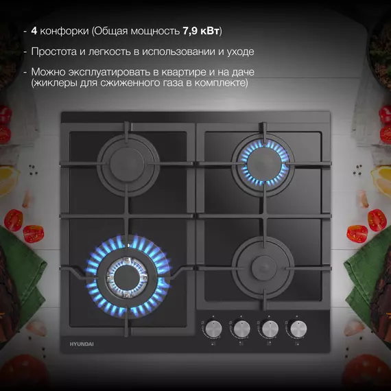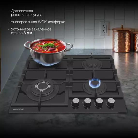 Газовая варочная поверхность Hyundai HHG 6436 BG черный