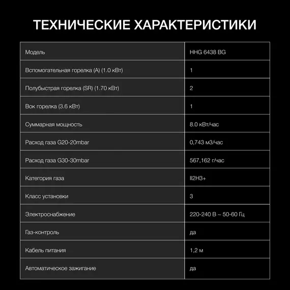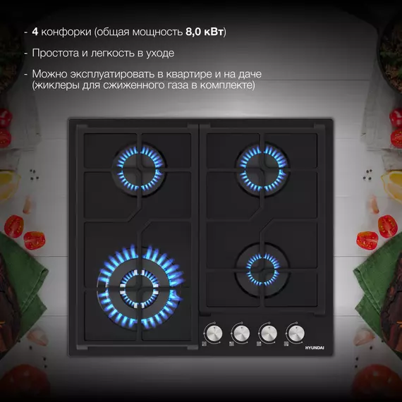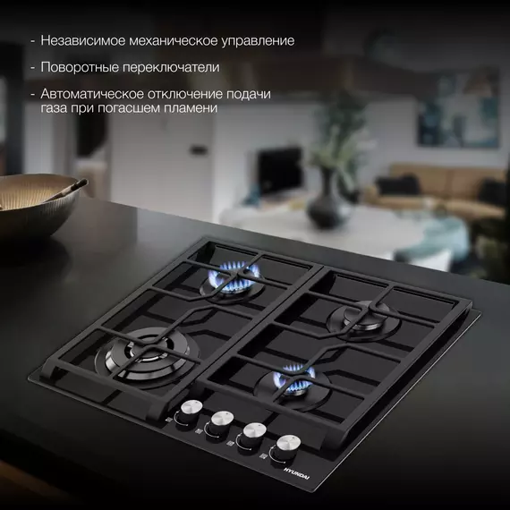 Газовая варочная поверхность Hyundai HHG 6438 BG черный
