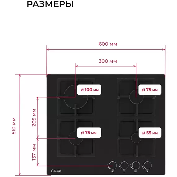 Газовая варочная поверхность LEX GVG 644A BBL черный [CHAO000426]