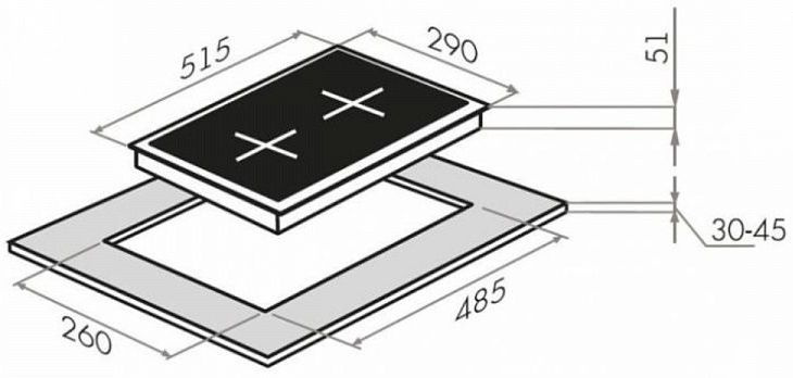 | Размеры для встраивания | 260x485 |