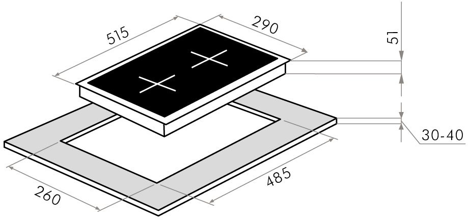 | Размеры для встраивания | 260x485x30мм |