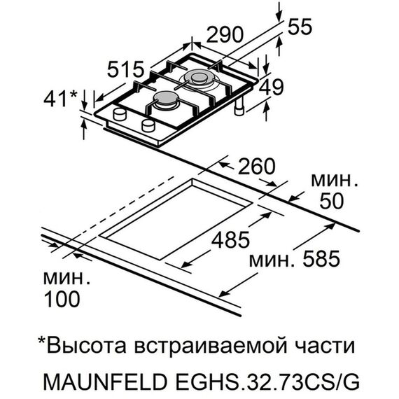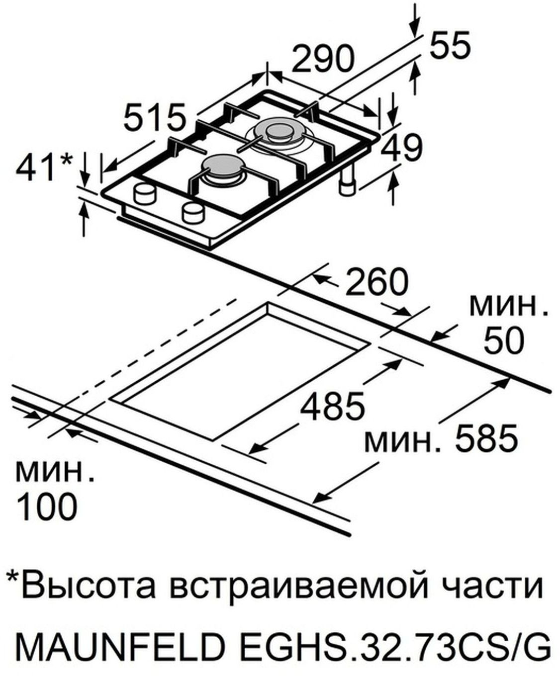 | Размеры для встраивания | 260x485x30мм |