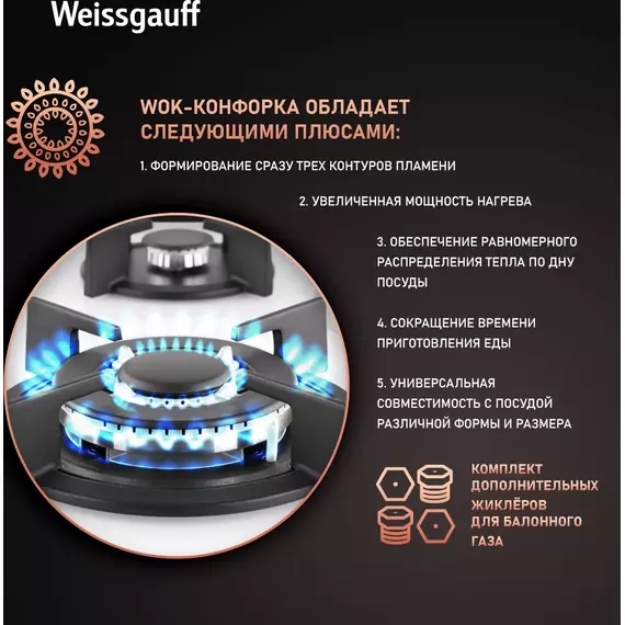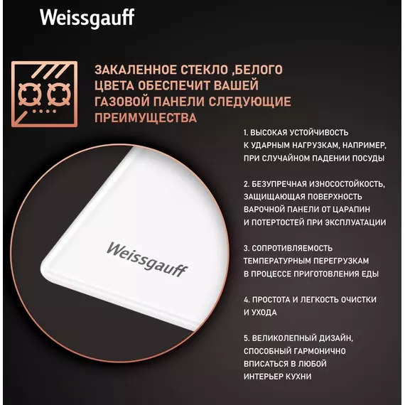 Газовая варочная поверхность Weissgauff HG 640 WGh белый [433582]