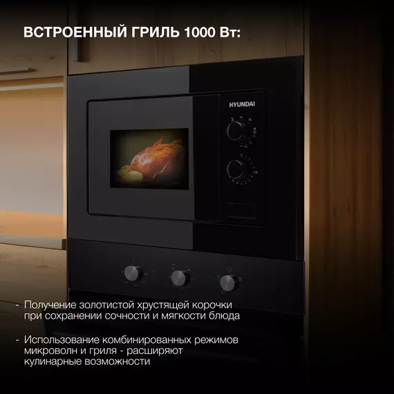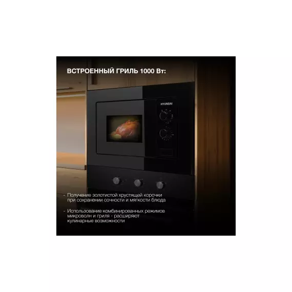 Микроволновая печь встраиваемая Hyundai HBW 2030 BG 20л. 800Вт черный