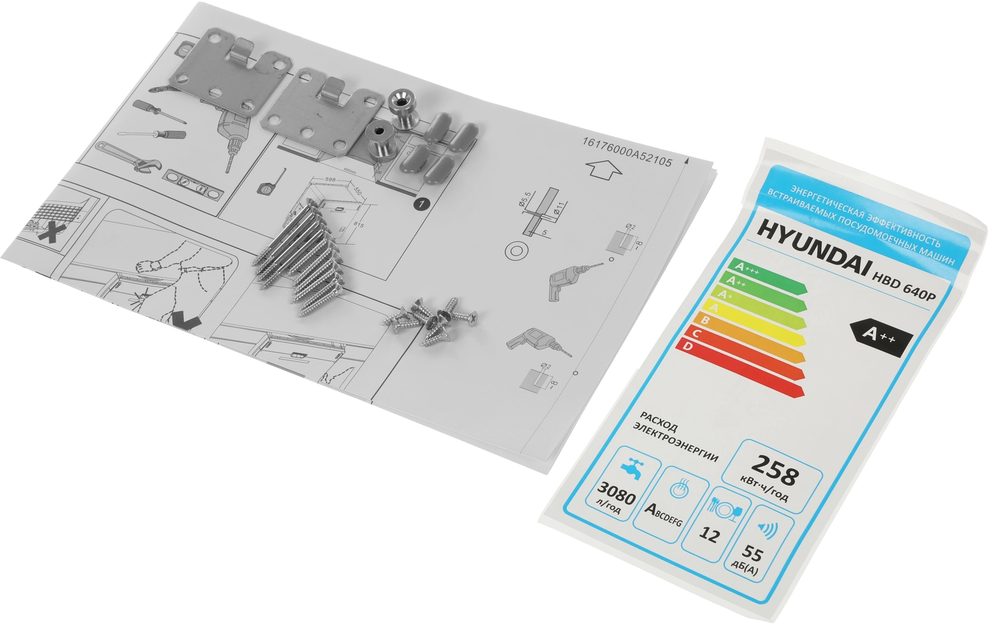 Посудомоечная машина встраиваемая Hyundai HBD 640P 1900Вт полноразмерная