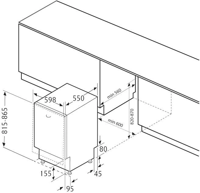 | Внутренняя конструкция | корзина для столовых приборов, освещение, полки для кружек, регулируемая по высоте корзина для посуды |