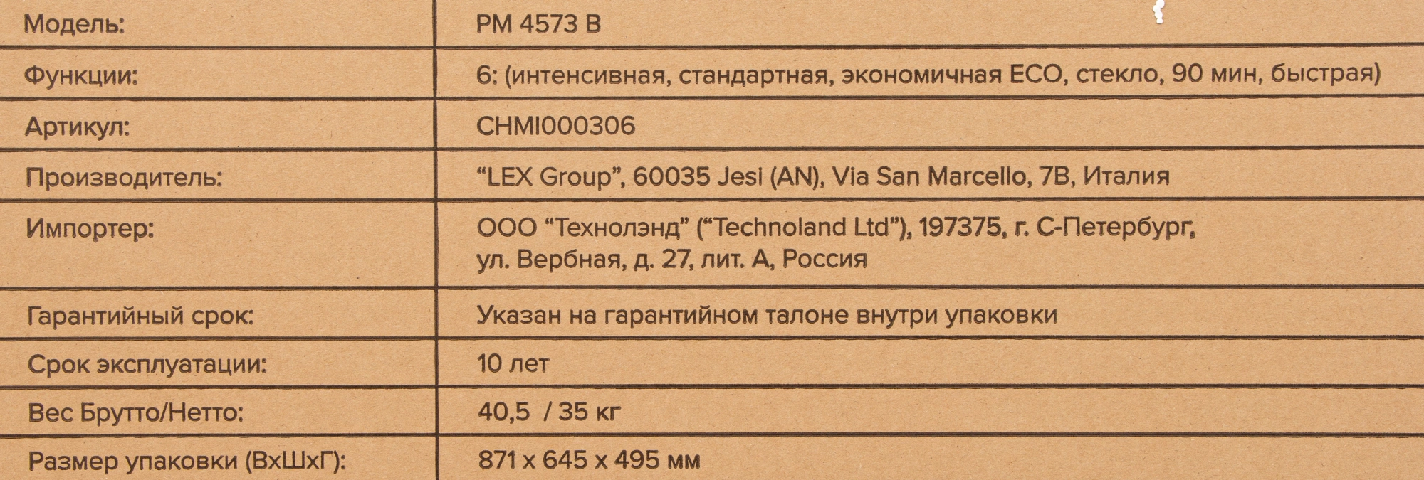 | Программы | Нормальная, Интенсивная, Экономная, Стекло, 90 минут, Быстрая, Автоматическая мойка. |