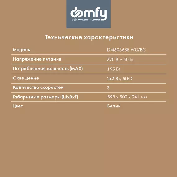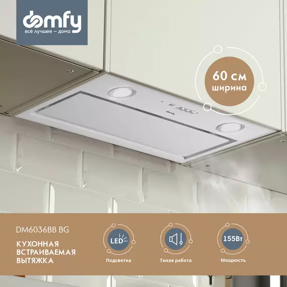 Вытяжка встраиваемая Domfy DM6036BB WG белый управление: кнопочное (1 мотор)