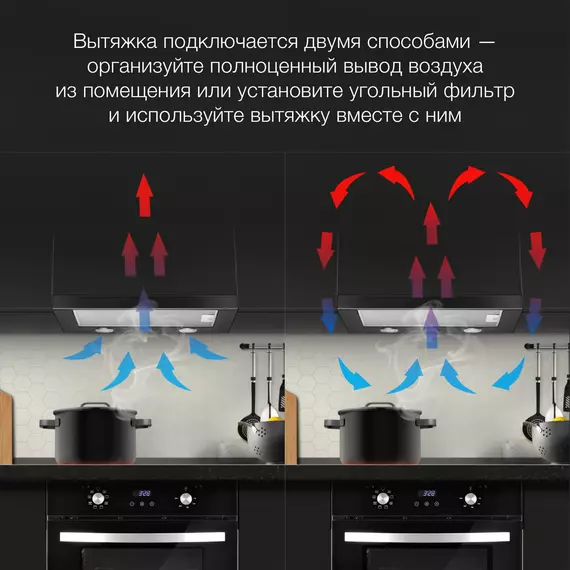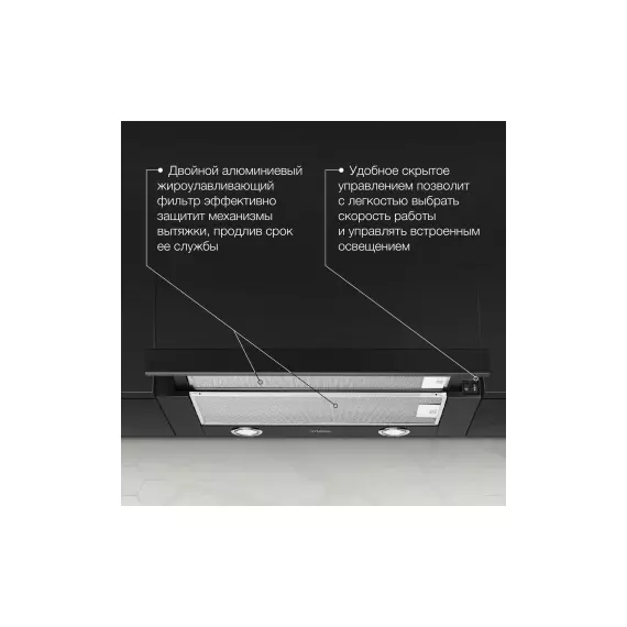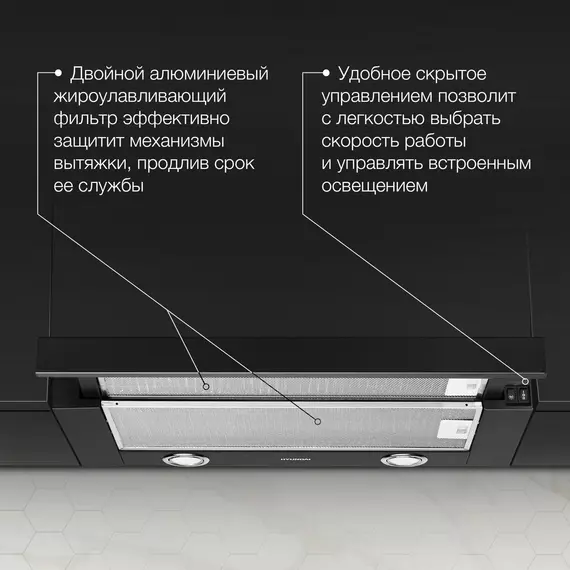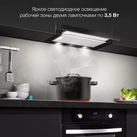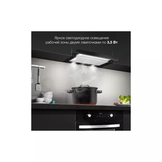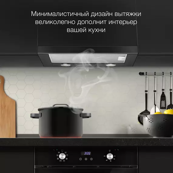 Вытяжка встраиваемая Hyundai HBH 6232 BK черный управление: кулисные переключатели (1 мотор)