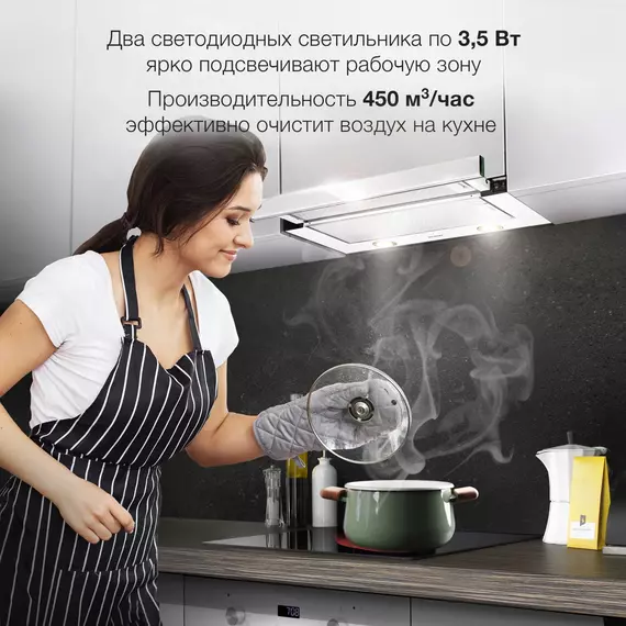 | Особенности | Фронтальная планка из стекла; Подходит угольный фильтр Hyundai HCF 05 |