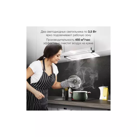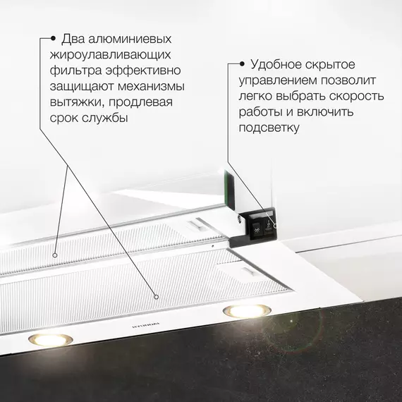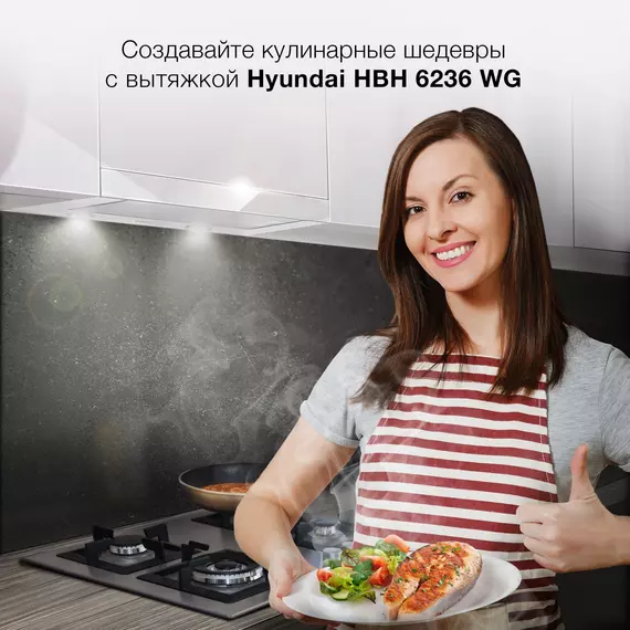 Вытяжка встраиваемая Hyundai HBH 6236 WG белый управление: кулисные переключатели (1 мотор)