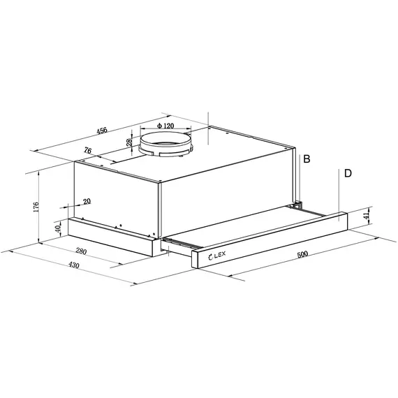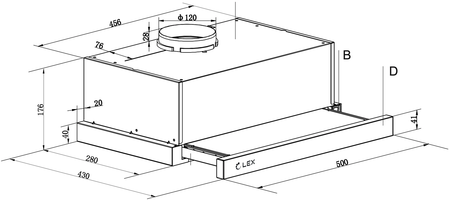 Вытяжка LEX HIDE 500 встраиваемая белый управление: кнопочное (1 мотор) [CHAT000122]