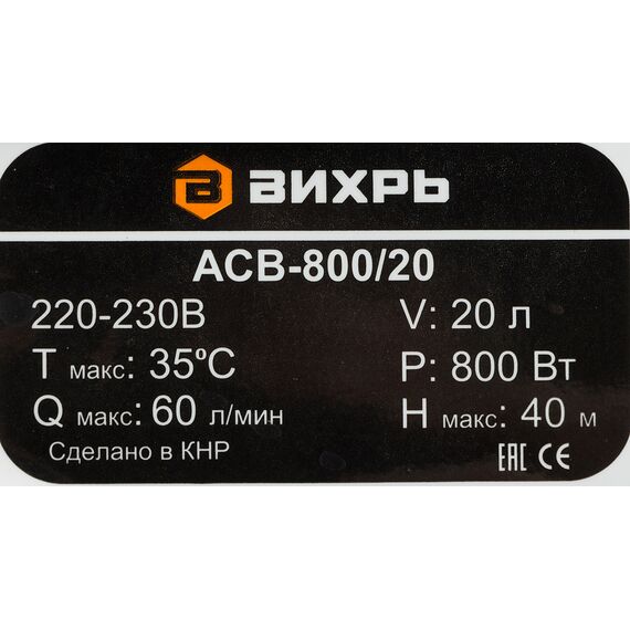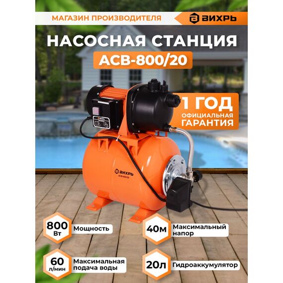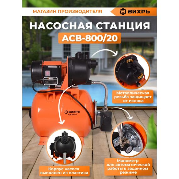 Насосная станция напорный Вихрь ACB-800/20 800Вт 3600л/час
