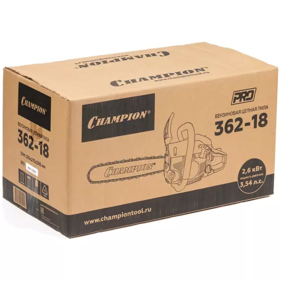 Бензопила Champion 362 18", 2.6кВт/3.54л.с., шина 45см-К095, цепь .325х1.5х72зв., 5.2кг