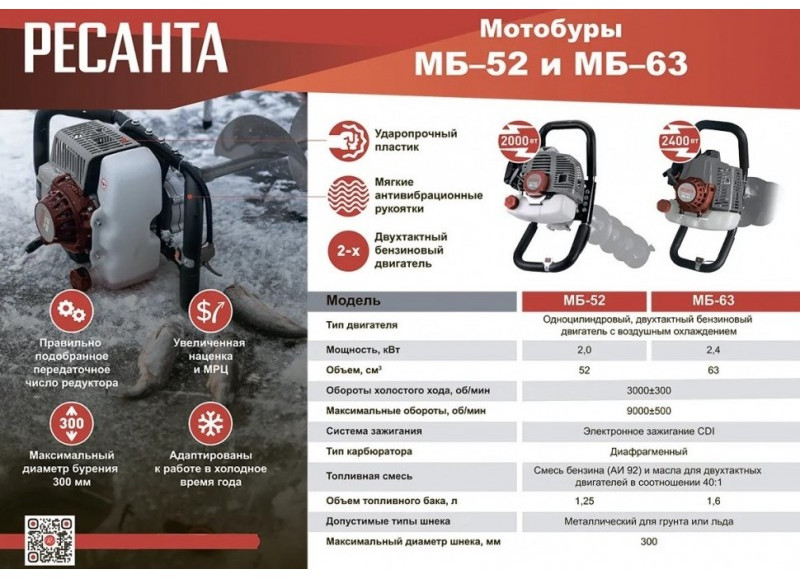 - Мотобур бензиновый Ресанта мб-63 предназначен для сверления отверстий в твердом грунте или льду. Устойчив к низким температурам воздуха, поэтому его можно использовать зимой