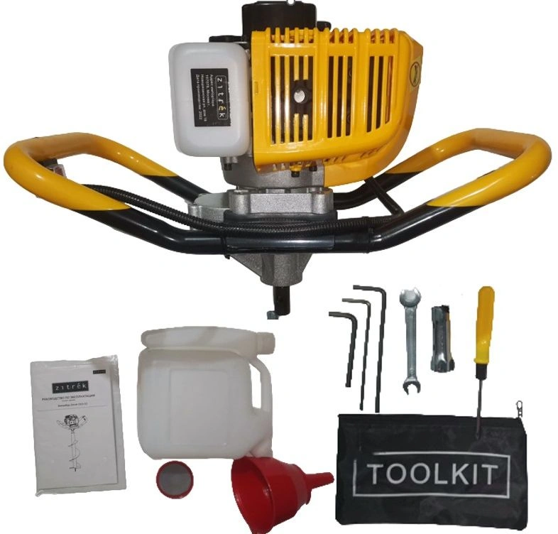 Мотобур Zitrek GED-52 предназначен для сверления отверстий в грунте или льде при помощи металлического шнека (не входит в комплект), приводимой в движение бензиновым двигателем. Инструмент оснащен двухтактным двигателем с воздушным охлаждением. Имеет устойчивые к деформации металлические рукоятки.