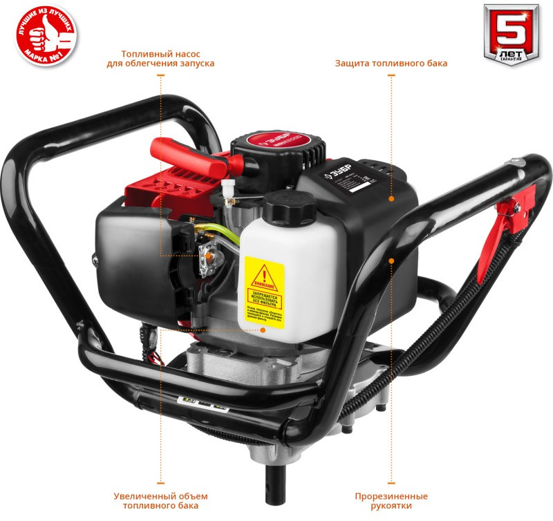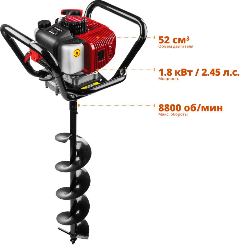 Мотобур (бензобур) Зубр МБ1-200 Н со шнеком, d=60-200 мм, 52 см3, 1 оператор